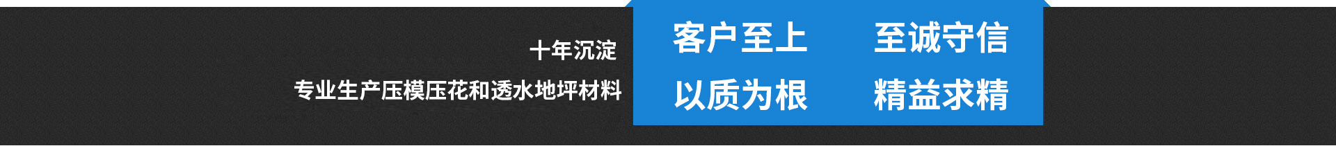 河北萬(wàn)樹地坪工程有限公司是一家大型地坪材料生產(chǎn)廠家,自10年建立至今,公司長(zhǎng)期從事地坪行業(yè)的相關(guān)內(nèi)容。目前公司主要的生產(chǎn)產(chǎn)品有壓模地坪(也叫壓花地坪、壓印地坪、印花地坪、仿石地坪、仿木地坪等)和透水混凝土(也叫生態(tài)透水混凝土、透水地坪)以及彩色混凝土的相關(guān)材料和工具。多年以來我公司始終秉承著“保質(zhì)保量,客戶至上”的理念,將好的地坪材料產(chǎn)品提供給每一位客戶,多年以來一直堅(jiān)持廠家直銷薄利多銷,讓客戶買到質(zhì)優(yōu)價(jià)廉的產(chǎn)品。